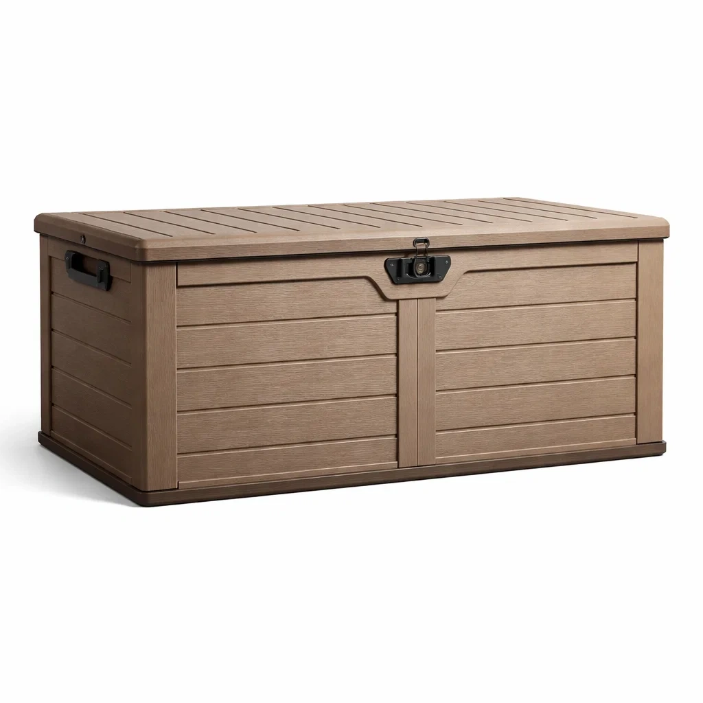 Coffre de rangement en résine marron avec serrure