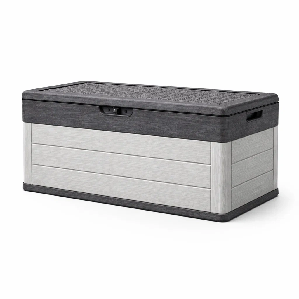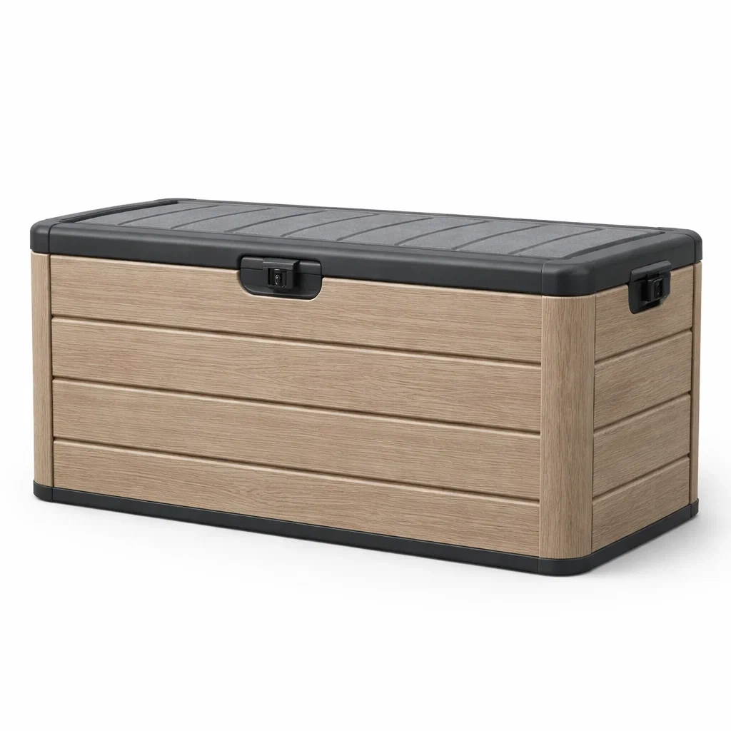Coffre de rangement extérieur en résine effet bois et noir